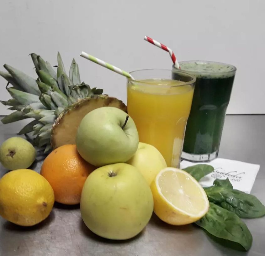 Zumo de Naranja, Espinaca, Piña, Limón, Manzana y Miel